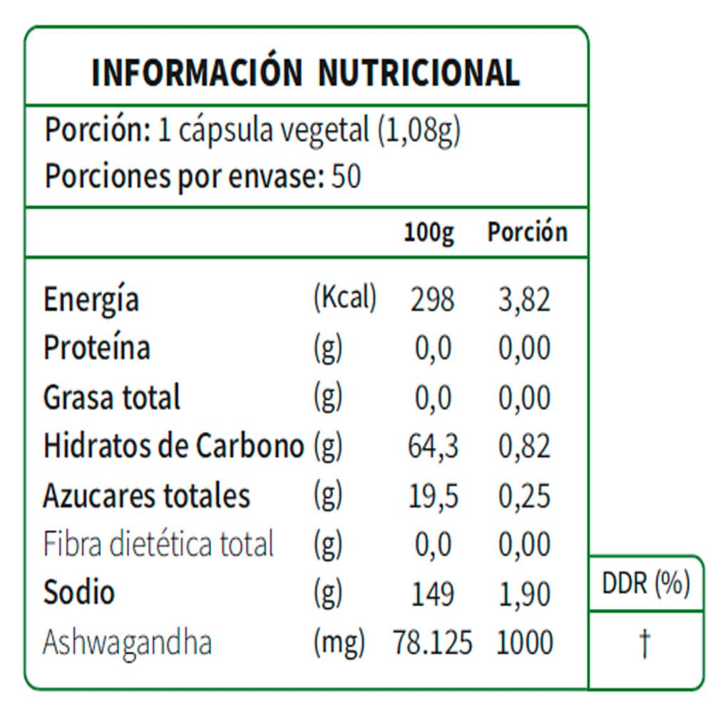 Hierba adaptógena de uso común en la antigua medicina ayurvédica, utilizada para mejorar energía, resistencia, ayuda a controlar el estrés, útil en depresión, apoya sistema inmune, ayuda en períodos de cansancio, insomnio, sobrecarga mental y física, antiinflamatorio, puede contribuir en mejorar niveles de glicemia, actúa regulando declive hormonal masculino o femenino y envejecimiento.