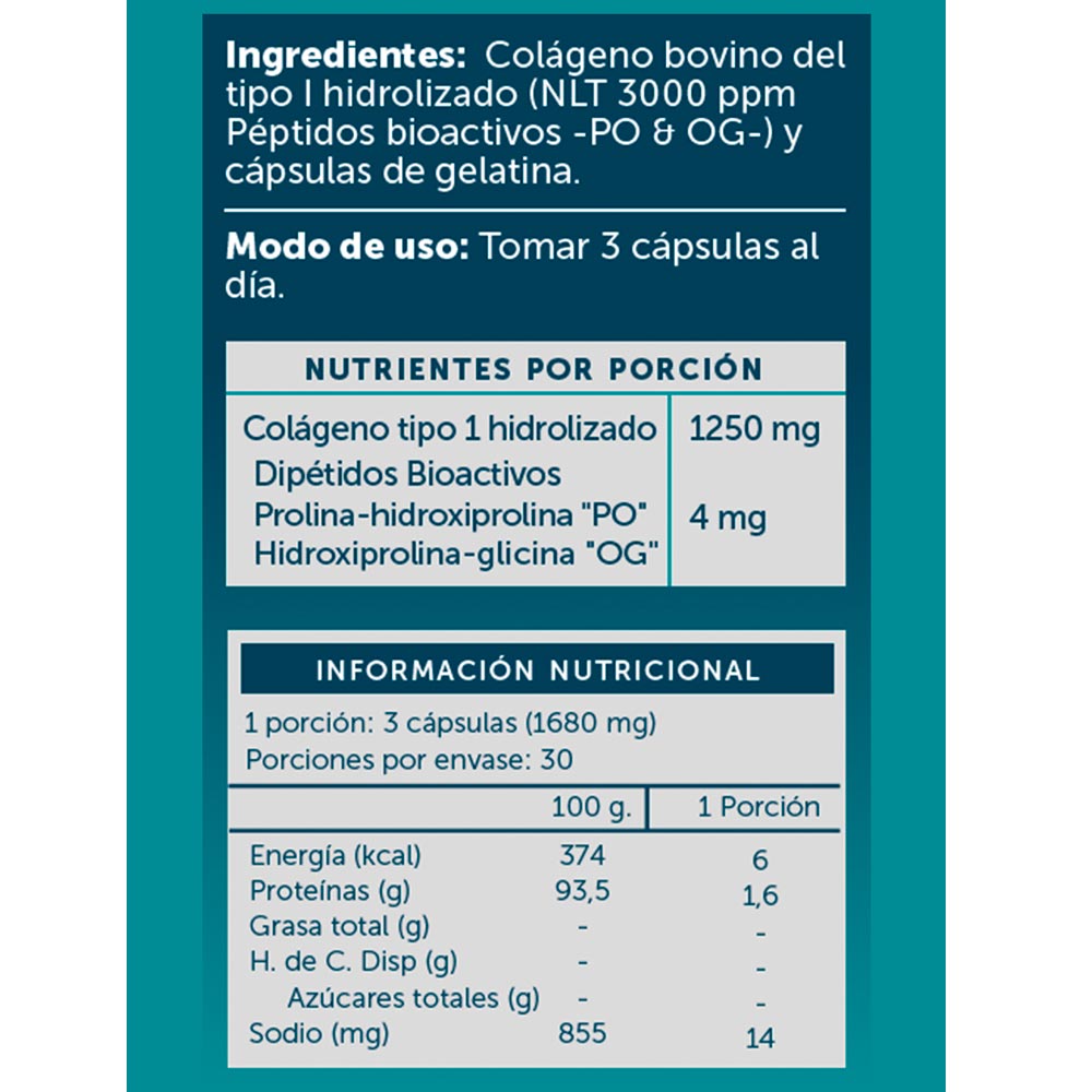 Colágeno bovino tipo I hidrolizado: 1250 mg