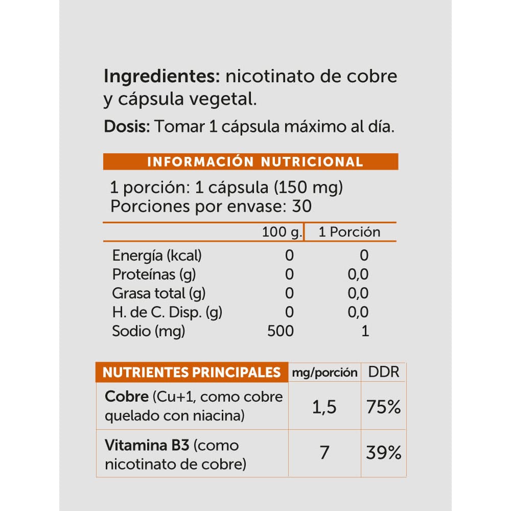 Cobre de alta biodisponibilidad, más energía celular ++