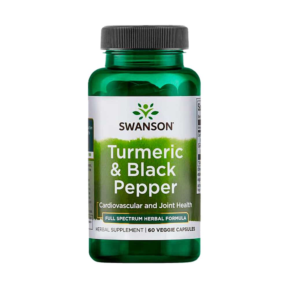 Cúrcuma con Pimienta negra de Swanson cuenta con 600 mg potentes de cúrcuma fortificada con pimienta negra para garantizar una biodisponibilidad óptima.