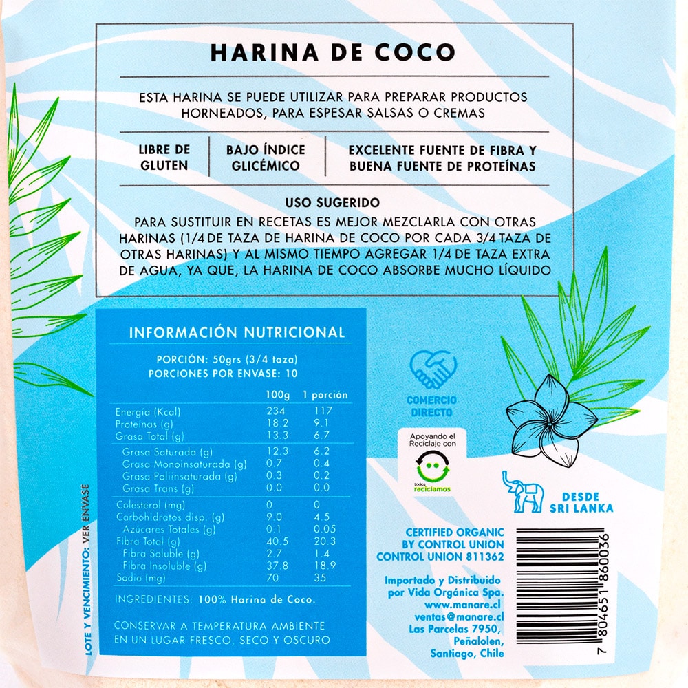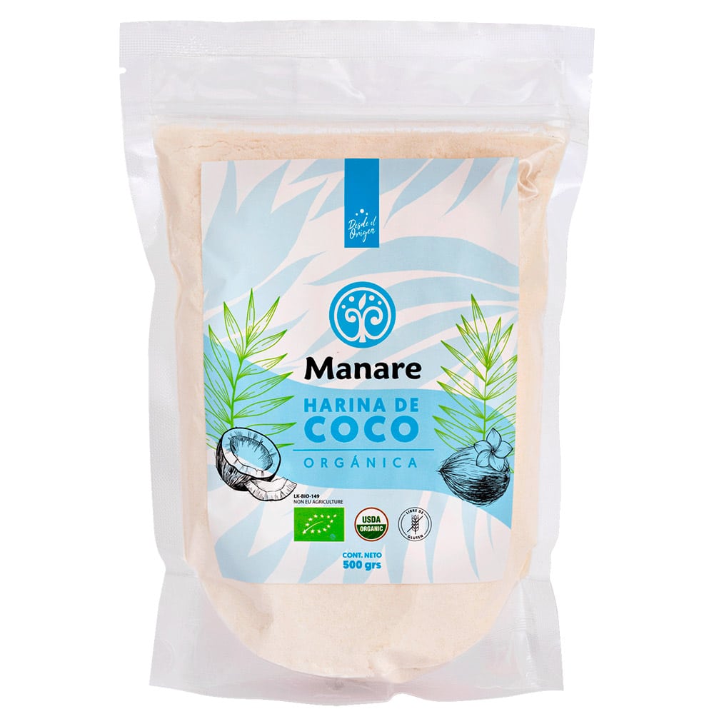 La harina de coco Manare es la mejor opción porque a diferencia de otras marcas no trae trozos de cáscaras o fibras, por lo cual es muy fina y liviana, lo que se traduce en una mejor textura en preparaciones. Posee también un color homogéneo y claro que no afecta en la presentación final.