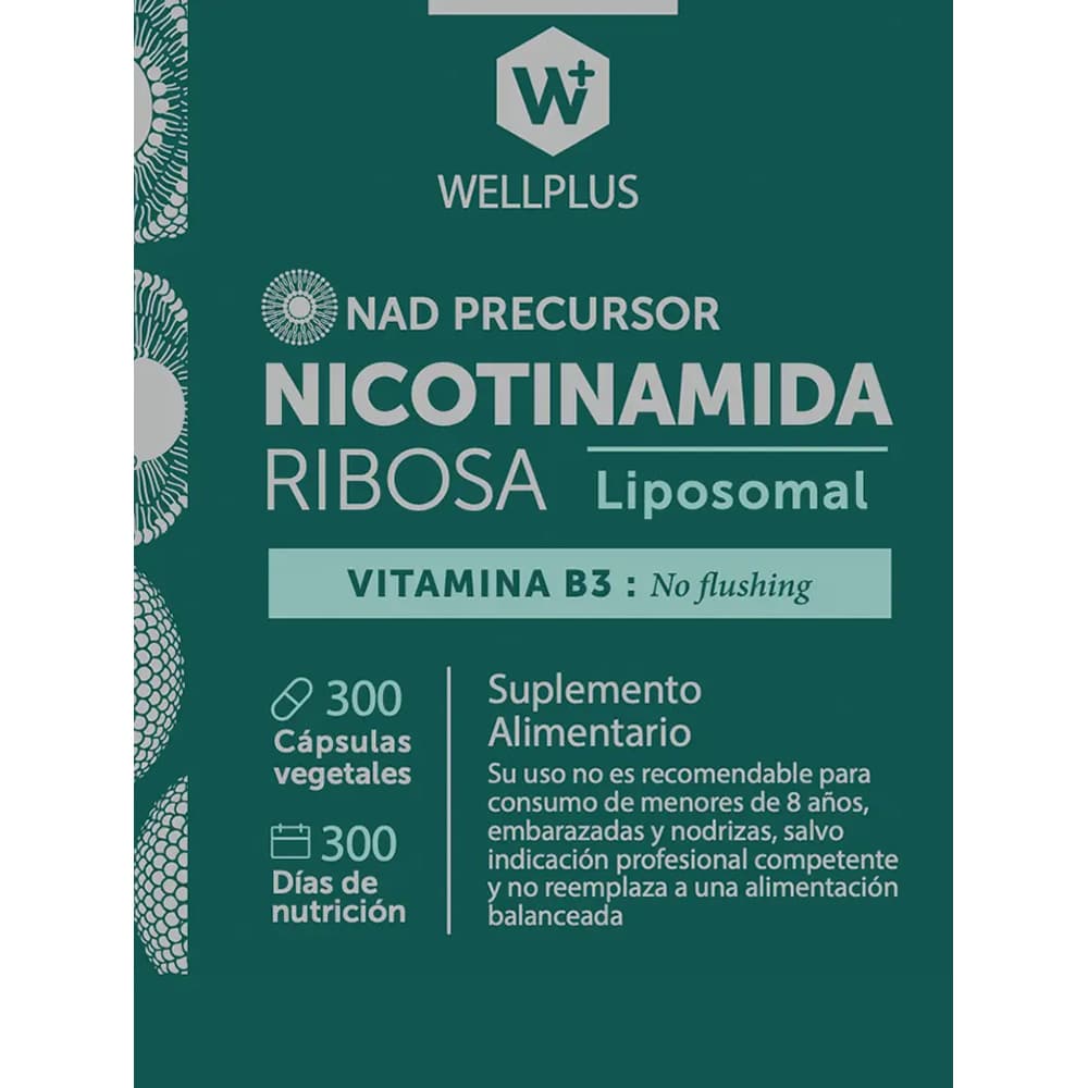 La Nicotinamida Ribosa es una forma de vitamina B3 que tu cuerpo puede convertir directamente en NAD⁺, una molécula esencial para la energía celular, reparación de ADN, y metabolismo celular.  A medida que envejecemos, los niveles naturales de NAD⁺ disminuyen, lo que puede contribuir a fatiga, deterioro cognitivo y envejecimiento celular. Al ser liposomal aumenta su absorción. No genera Flushing.
