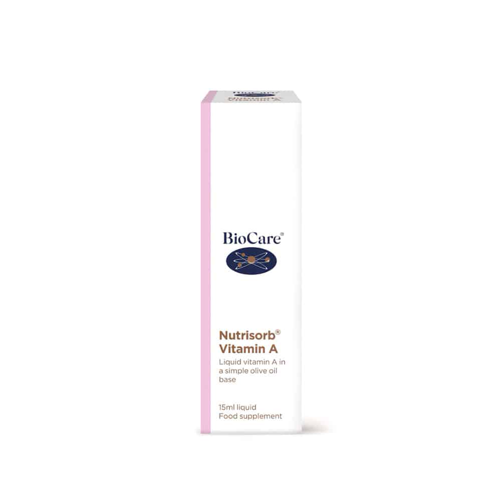 Nutrisorb Vitamina A®, es una preparación líquida de vitamina A que proporciona 2500UI por porción, presentada en una base de aceite de oliva e hipoalergénica, de alta biodisponibilidad y especialmente adecuada para aquellas personas con intolerancias alimentarias.
