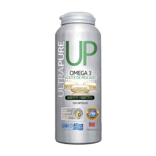 Omega UP UltraPure es un suplemento desarrollado con Aceite de Pescado de alta concentración de EPA y DHA, llegando a 600 mg de ácidos grasos EPA y DHA por cada cápsula de 1 gr.