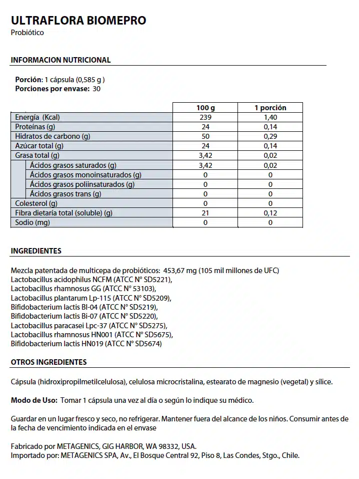 Muchas fórmulas probióticas no están identificadas por cepas, lo que significa que solo enumeran el género y la especie en lel frasco. Sin embargo, solo se ha demostrado que cepas específicas son clínicamente efectivas. UltraFlora BiomePro contiene ocho cepas probióticas en sus dosis clínicamente relevantes en una conveniente cápsula.