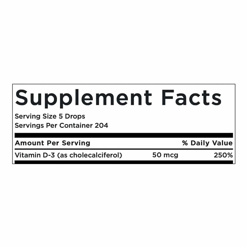 2,000 UI (50 mcg) por porción – 5 gotas | Contiene 204 porciones